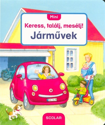 Az elsőként megjelenő kötetben a legismertebb járművek láthatók: betonkeverő, traktor, kukásautó, markoló, autóbusz, vonat, személyautó. A könyvben szereplő jelenetek ösztönzik a kisgyerekeket, hogy megkeressék és nevükön nevezzék a látott dolgokat.