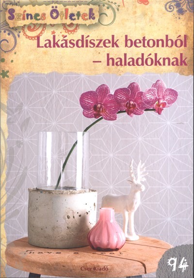 A kezdőknek szóló kötet sikerére való tekintettel összeállítottunk egy kötetet a haladóknak is. Korábban a beton, ez a hideg és szürke anyag elképzelhetetlen volt lakásdíszhez. Korábban a beton, ez a hideg és szürke anyag elképzelhetetlen volt lakásdíszhez. Mára kedveltté tette rusztikus, természetes megjelenése. A beton strapabíró, könnyen formázható, olcsó alapanyag, amelyből különleges tárgyak (pl. ajtótámasz, gyertyatartó, szappantartó stb.) készíthetők. Környezetbarát alapanyag, hiszen természetes összetevőkből áll, könnyen újrahasznosítható. Népszerűségét annak is köszönheti, hogy gyorsan és könnyen dolgozhatunk vele, sőt még a kevésbé jó kézügyességűek is szép dolgokat alkothatnak. A tartalomból Anyagok, eszközök és tudnivalók Használati tárgyak betonból Kaspó Betűk Fedeles tároló Vázatartó Állatfigurák Vázák Kétszintes kínáló Edényalátét Vázák Tálak Levélnehezék Borhűtő köpeny Üdvözlőtáblákk