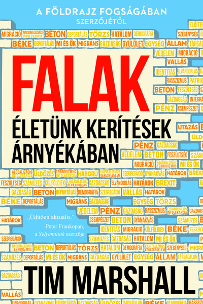 A földrajz fogságában szerzőjének új könyve „Beköszöntött a falak kora.” Minden történetnek két oldala van – ahogyan minden falnak is. Napjainkban, a törzsiség új korában egymás után emelkednek az újabb és újabb barikádok. Pénz, rassz, vallás, politika: alapvetően ezek választanak el bennünket egymástól. Donald Trumpnak a mexikói határra tervezett fala legalább annyit árul el Amerika megosztott múltjáról, mint az ország jövőjéről. A kínai nagy tűzfal elválaszt „minket” „tőlük”, Európában pedig a politika és a migráció lobbanékony elegye már magát a liberális demokráciát sodorja veszélybe. Tim Marshall érdekfeszítő könyvében azt kutatja, mi osztott meg bennünket a múltban, feltérképezi a jövőt, és rávilágít a világunkat még sokáig meghatározó törésvonalakra. „Sokszor hallunk az izraeli falról, az Egyesült Államok és Mexikó közötti határfalról vagy az Európában húzódó kerítésekről, mégis kevesen tudják, hogy valójában sorra épülnek falak a határok mentén. Világjelenségről van szó: keverik és öntik a betont, anélkül hogy ez legtöbbünknek feltűnne. A 21. században már most több ezer kilométernyi fal és kerítés épült meg a világ számos pontján. Legalább 65 ország – az államok több mint egyharmada – épített akadályokat a határai mentén; a második világháború óta felhúzott falak több mint fele az ezredforduló után épült.” „Üdítően aktuális.” Peter Frankopan, a Selyemutak szerzője