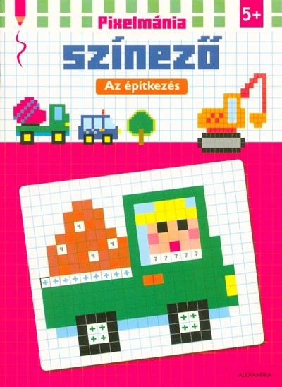 Milyen egy építkezés a pixelek világában? Most felfedezheted és ki is színezheted! A pixelmánia a színezés teljesen új módja, melyet a videójátékok látványvilága inspirált. Az apró, szabályos négyzetek színezésével fantasztikus formavilág bontakozik ki a lapokon. Színezd ki a négyzeteket a színkód alapján, hogy meglásd az oldalakon rejtőző buldózert, darut vagy kotrógépet! Nahát! Igazi pixel-művész lettél! A pixeles színezés szórakoztató, fejleszti a gyerekek finommotoros mozgását és képzeletvilágát. Kiváló lehetőség a nyugodt koncentrálásra.
