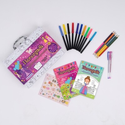Tarts velünk egy varázslatos utazásra a hercegnők birodalmába! Mesés labirintusok, különbségkeresők és más érdekes feladványok várak rád. 50 mesés matrica 10 filctoll 5 kétoldalas ceruza 2 foglalkoztatókönyv 2 zselés toll